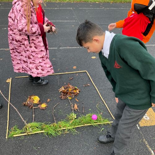 We began our second shared education session with a range of team games that helped everyone get to know each other. We then moved on to engaging Forest School activities, encouraging exploration and collaboration in the outdoor environment. Using natural resources found around us, children were able to create imaginative tree portraits, combining creativity with an appreciation for nature.