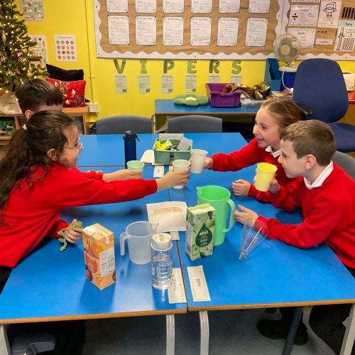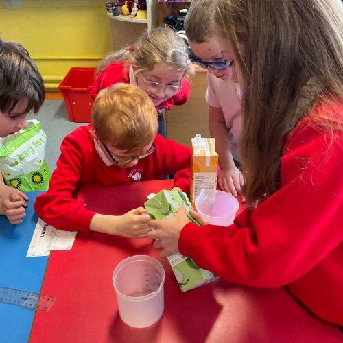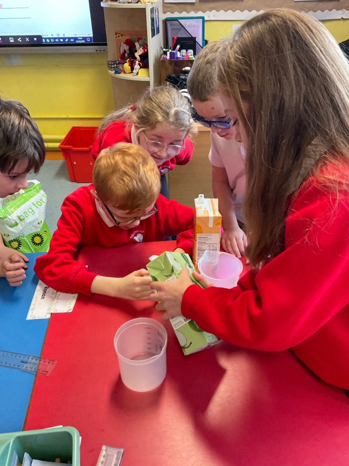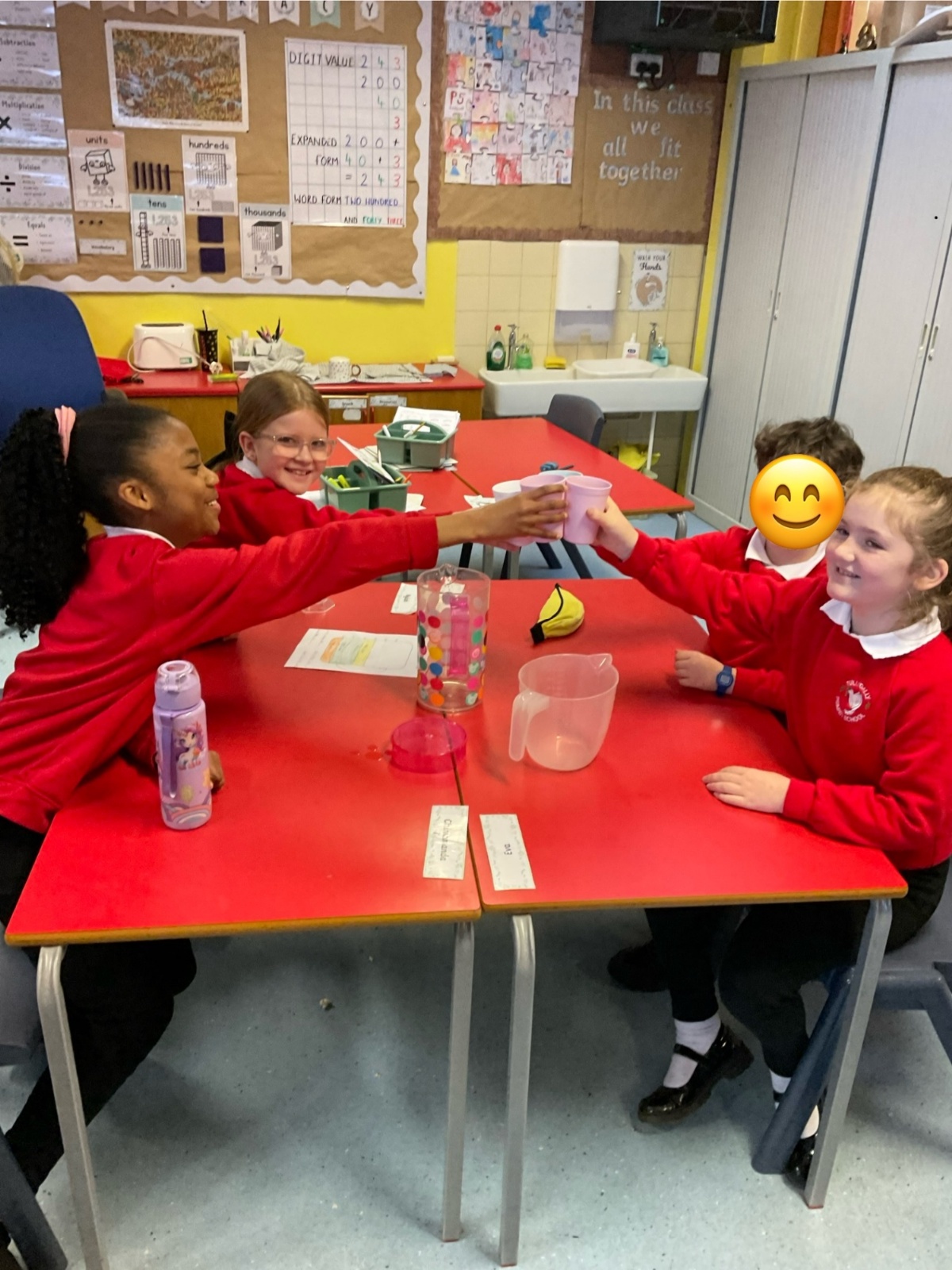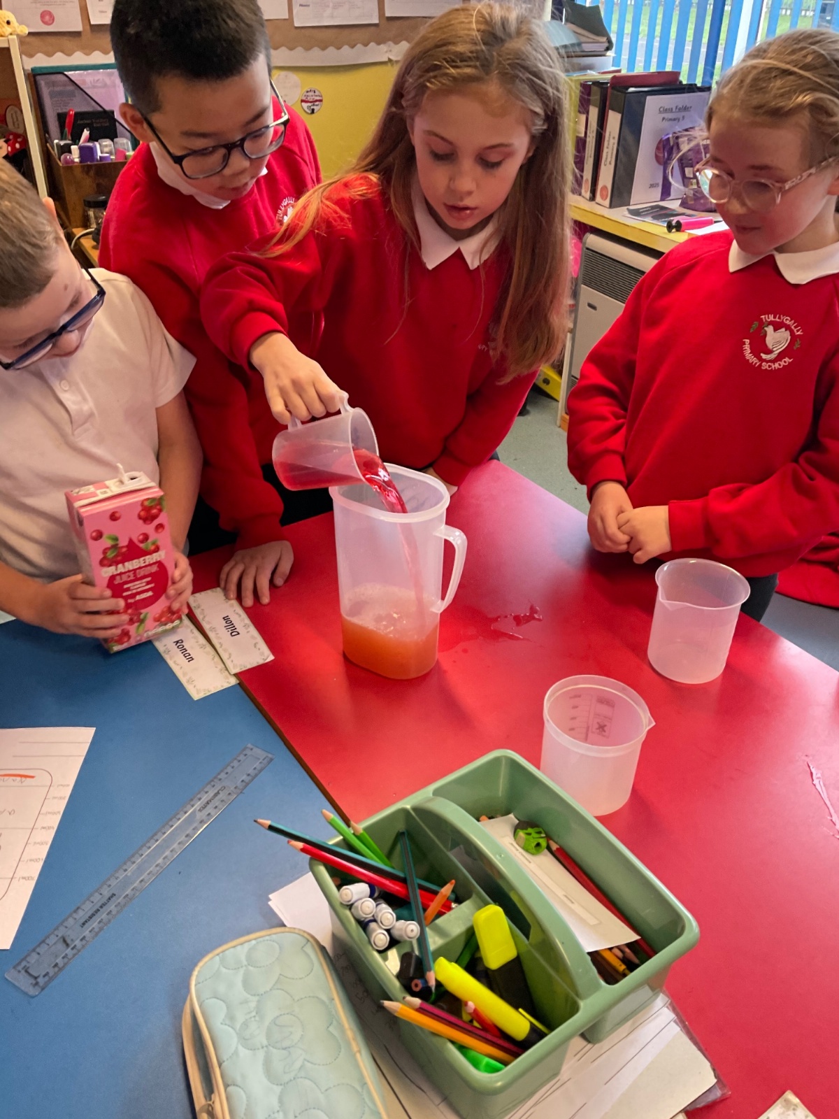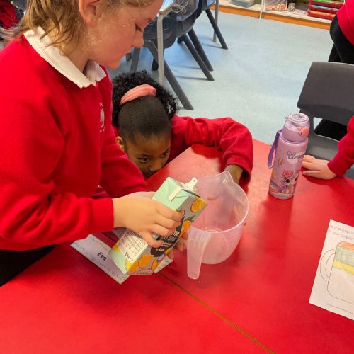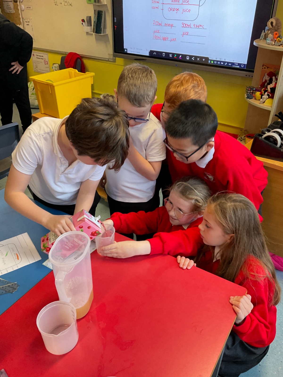 Today we made capacity concoctions! We began by discussing what juices we would like to include in our drinks and recording this on our worksheets. We measured each juice carefully in millilitres, using a range of tools like jugs, cups, and syringes. We talked about which containers held more or less and experimented with mixing amounts together. The best part was tasting our creations at the end and seeing how our measurements turned into yummy drinks!