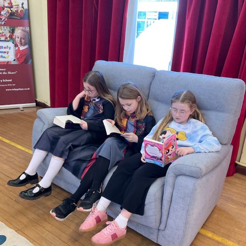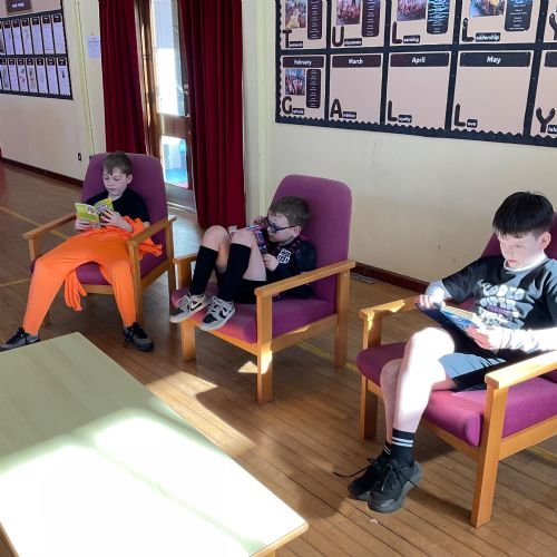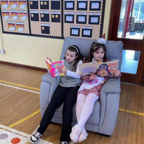 Primary 5 took part in the Tullygally Readathon and really enjoyed the chance to relax with a book on the comfy seats. The children loved choosing their own stories to dip into and spending quiet time reading with friends. A highlight of the afternoon was listening to Reverend Stu share some of his favourite stories.