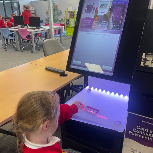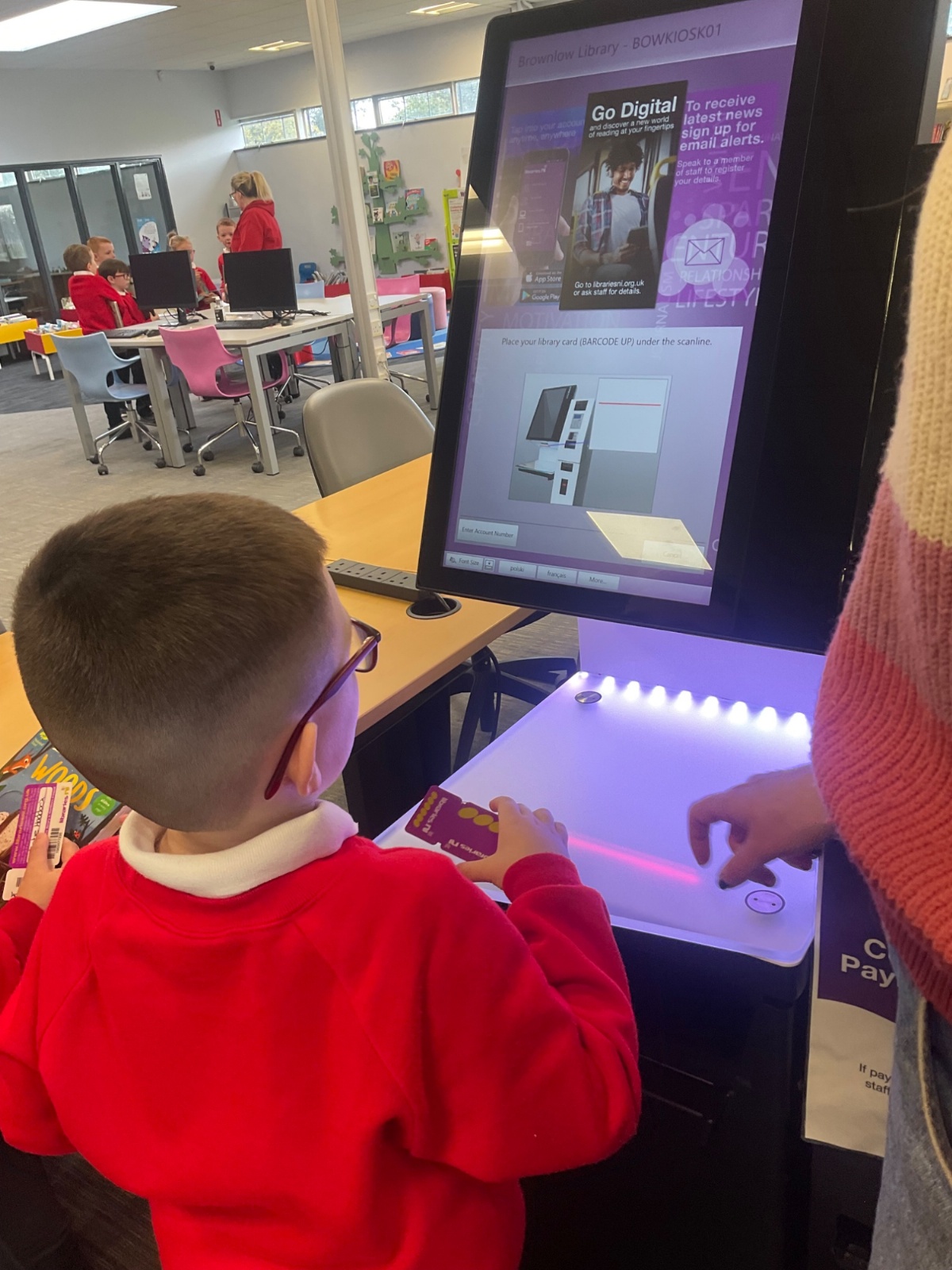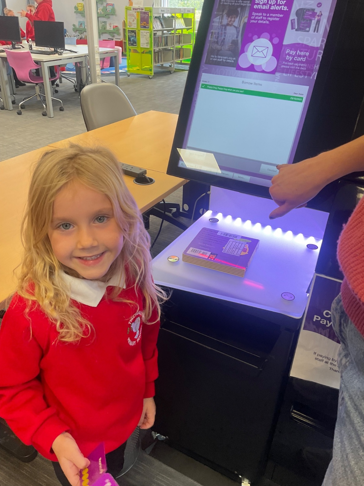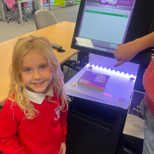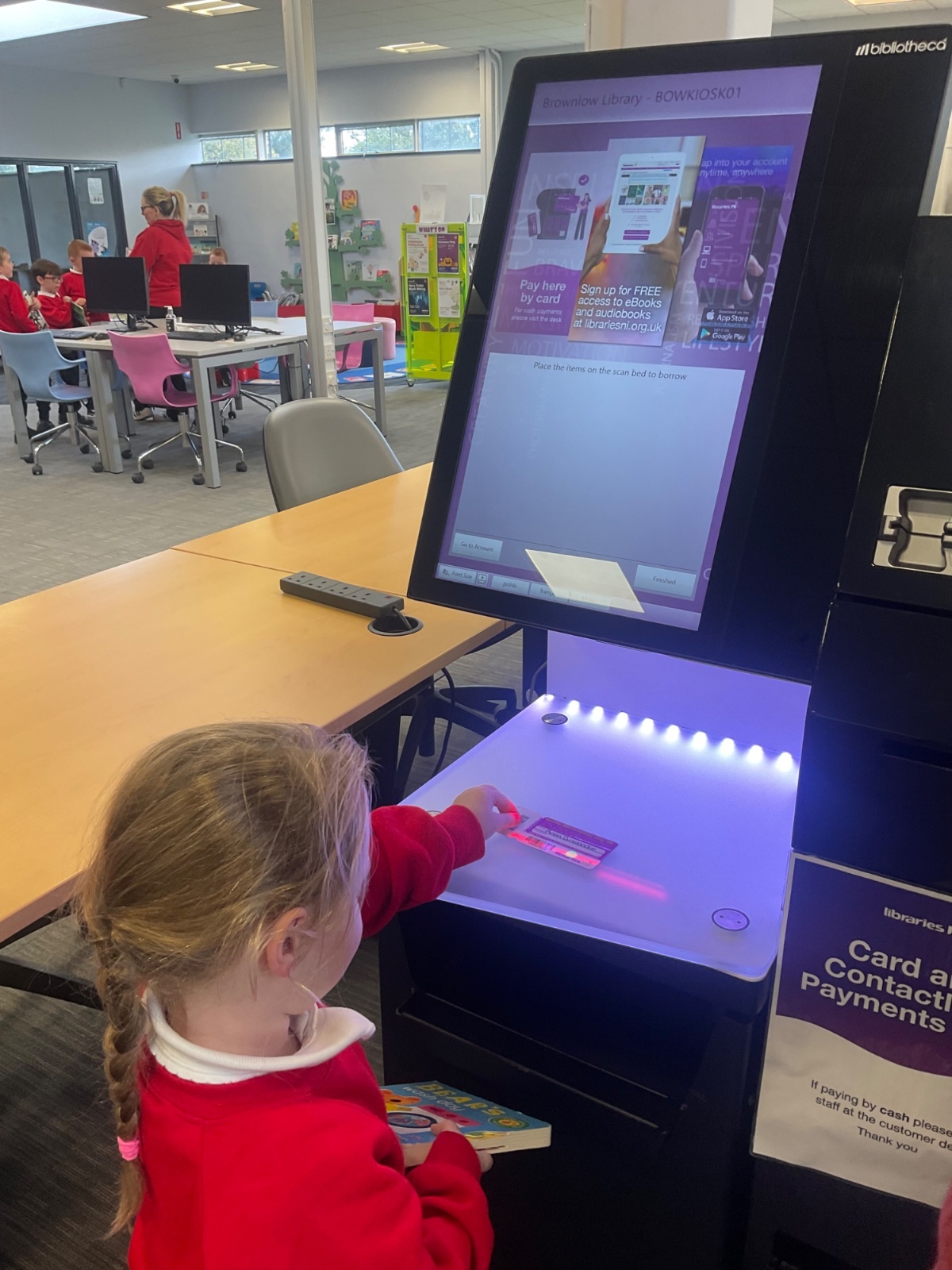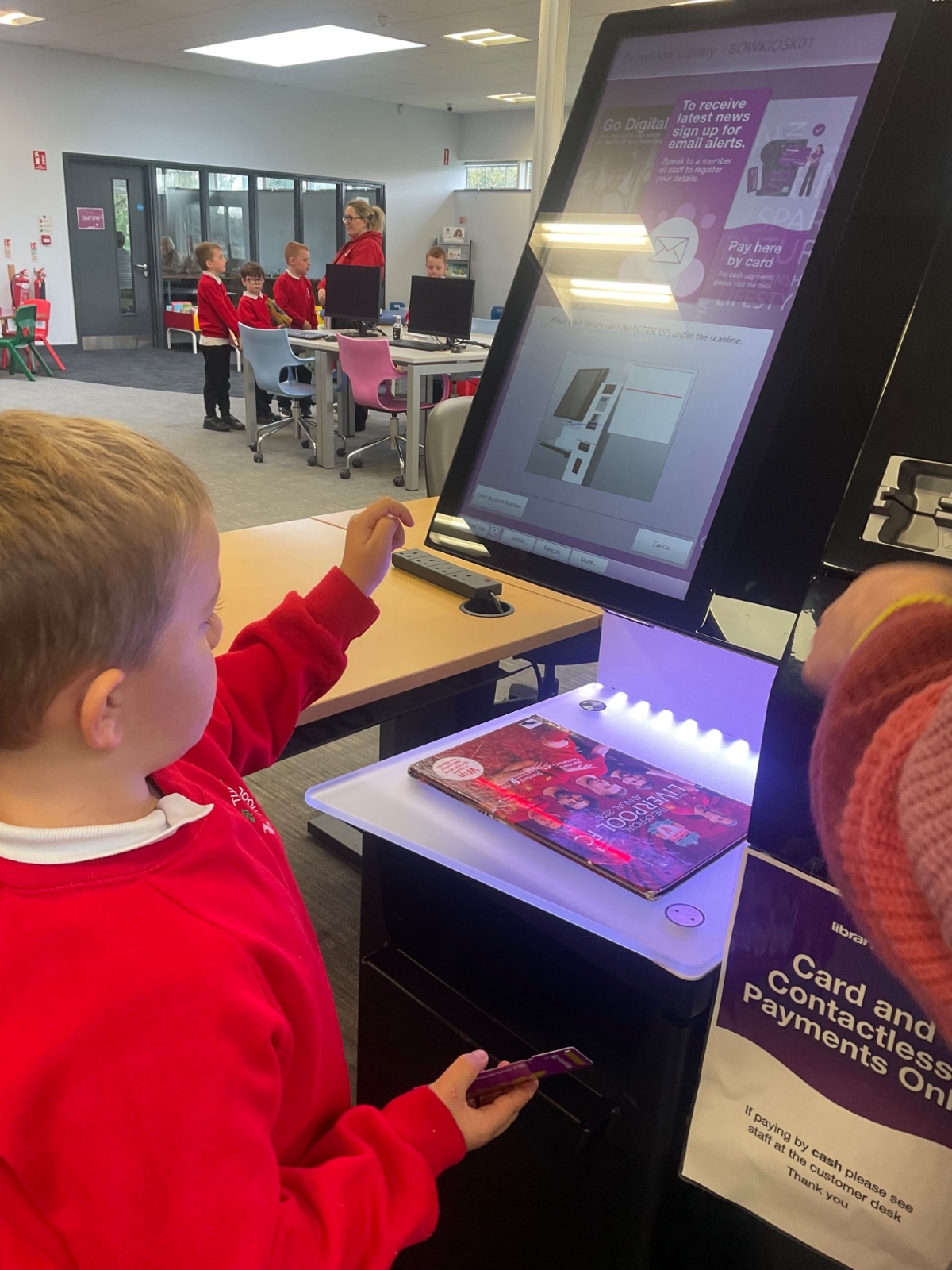 We browsed many books, we picked a book and we scanned our card to borrow. 📚