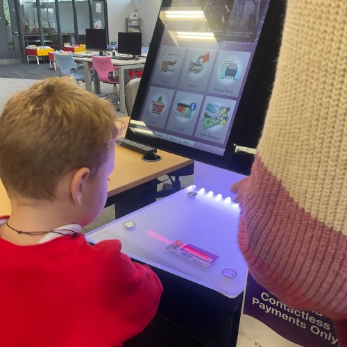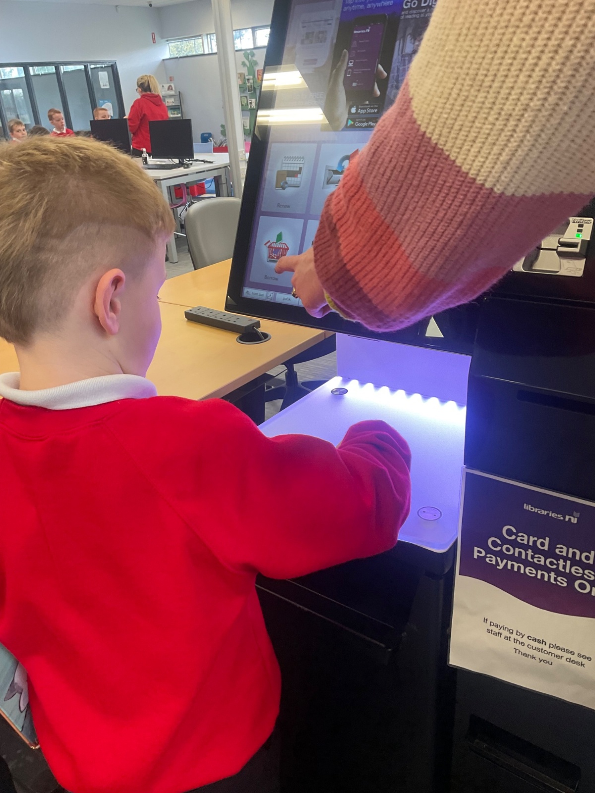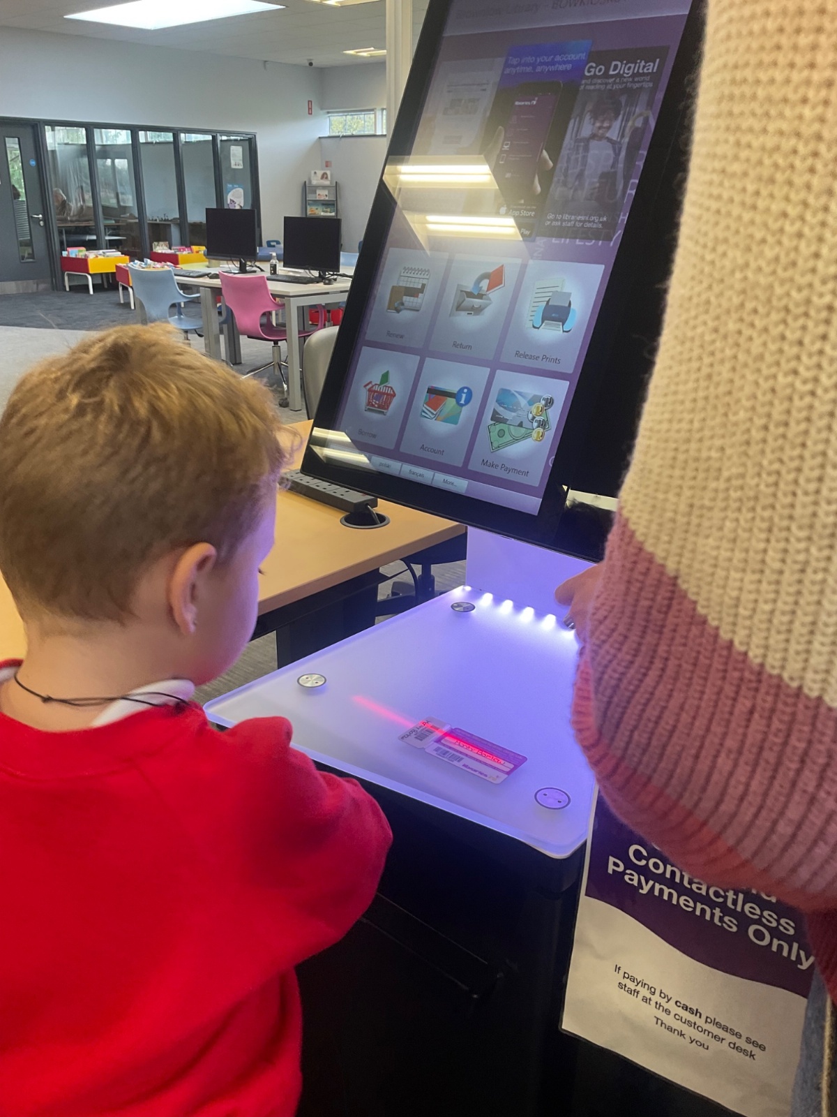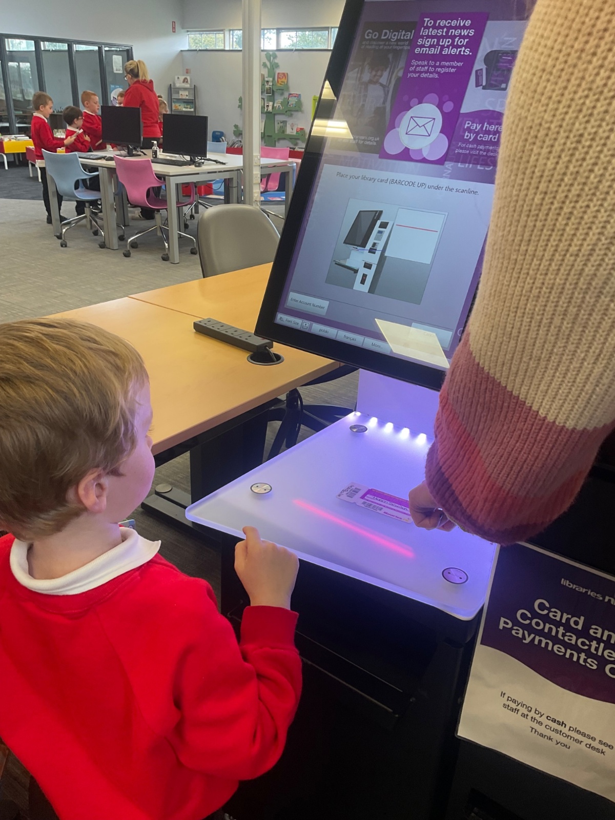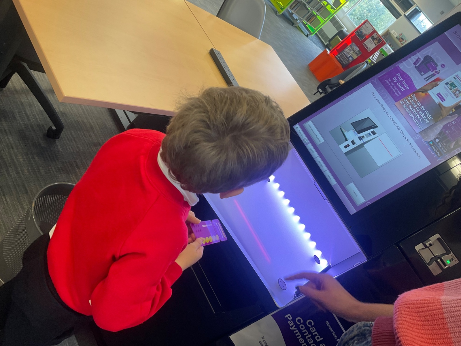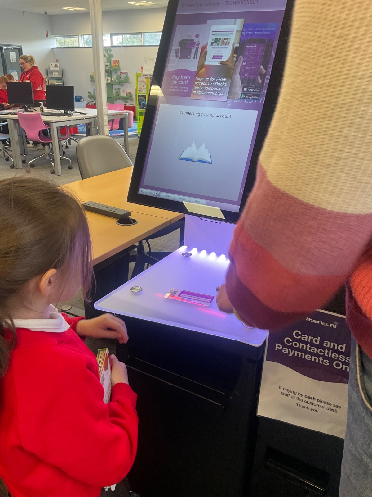 We browsed many books, we picked a book and we scanned our card to borrow. 📚