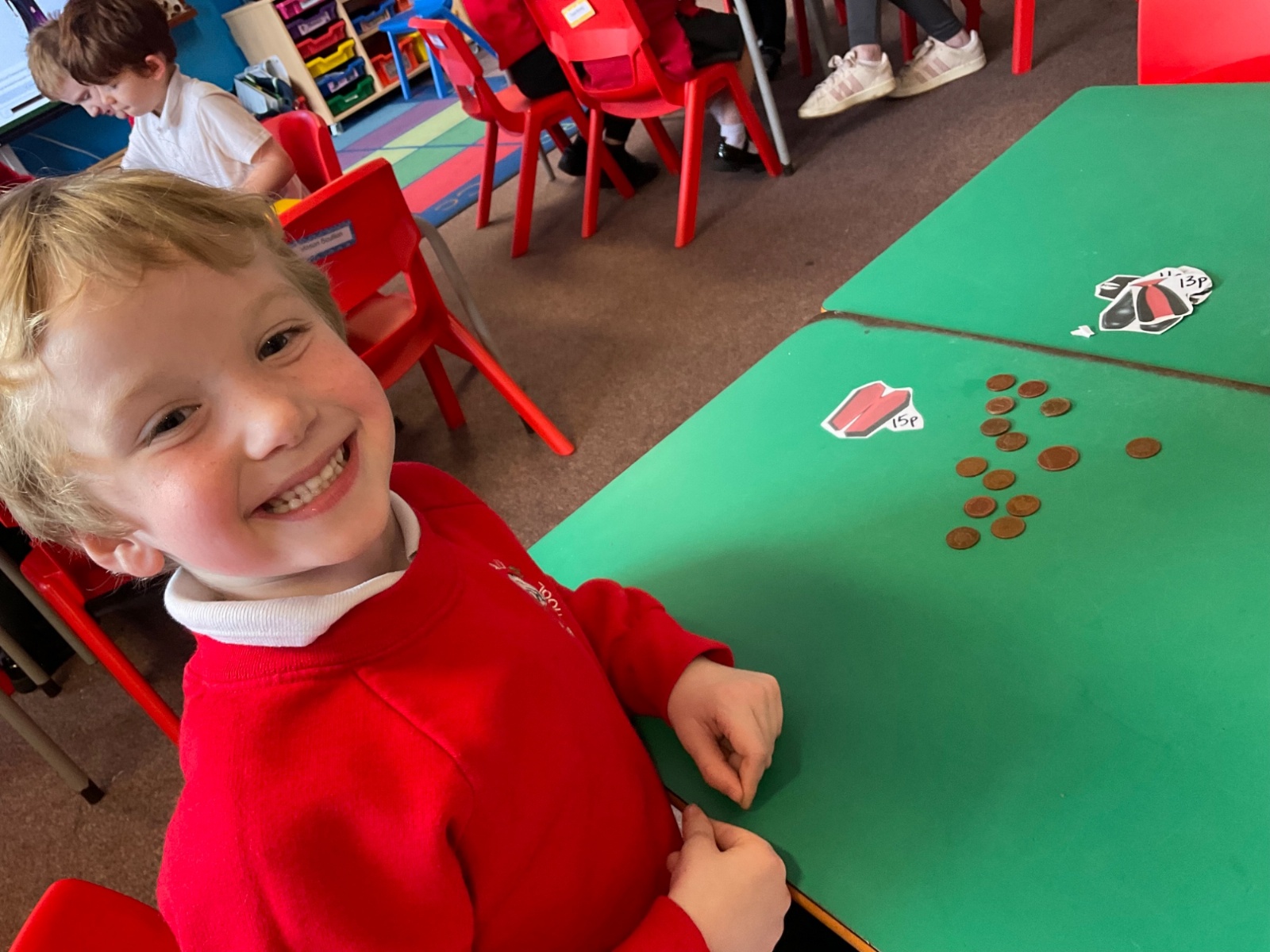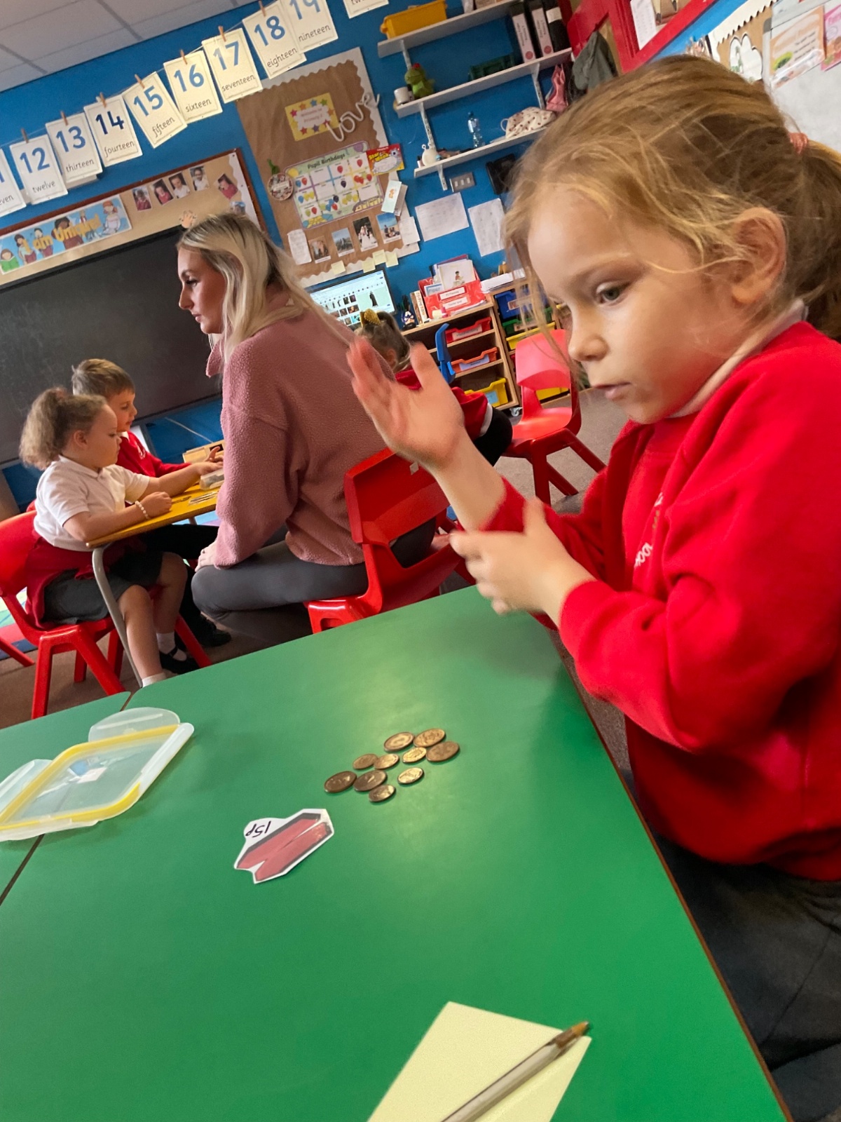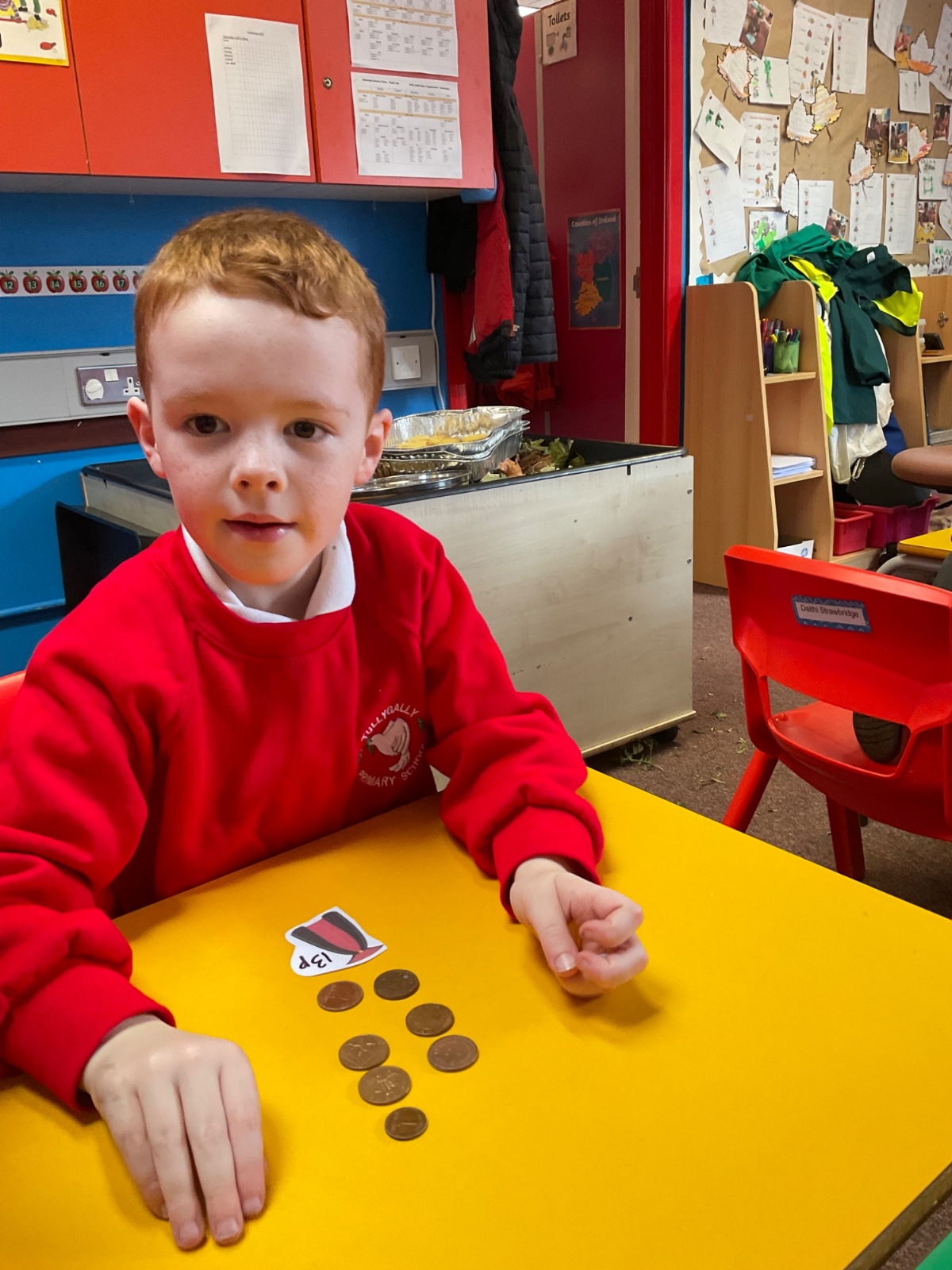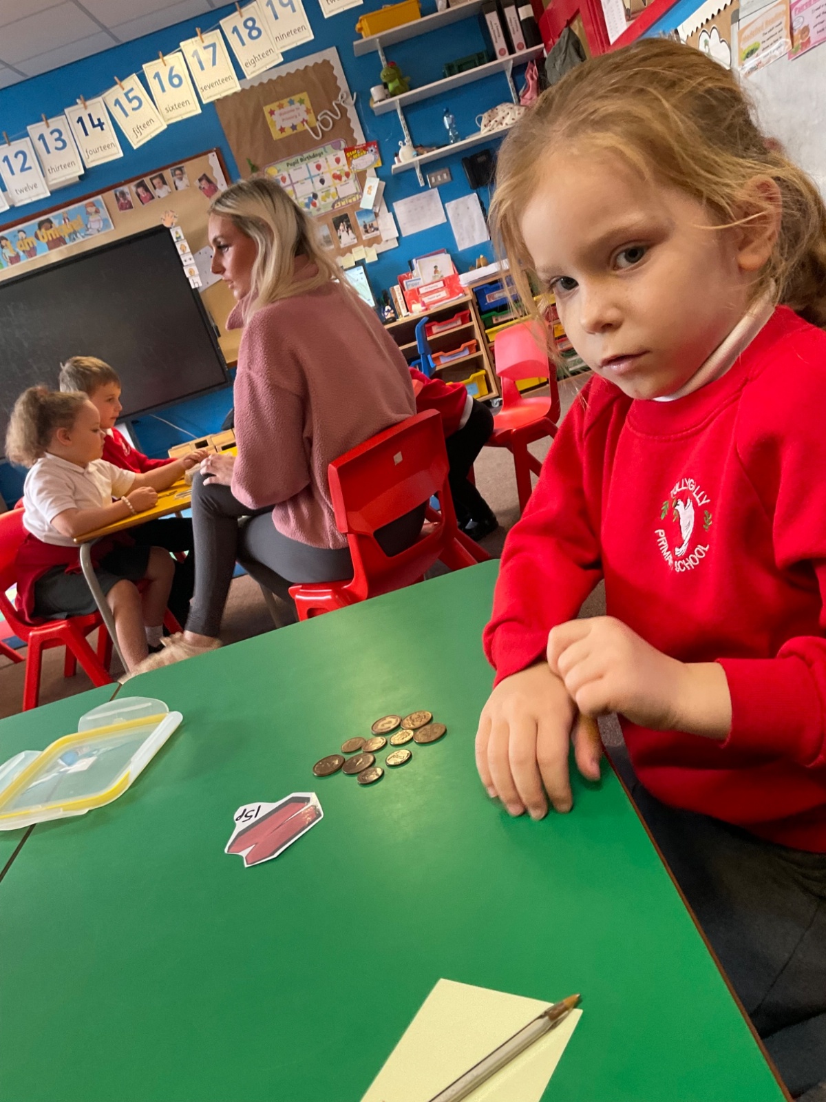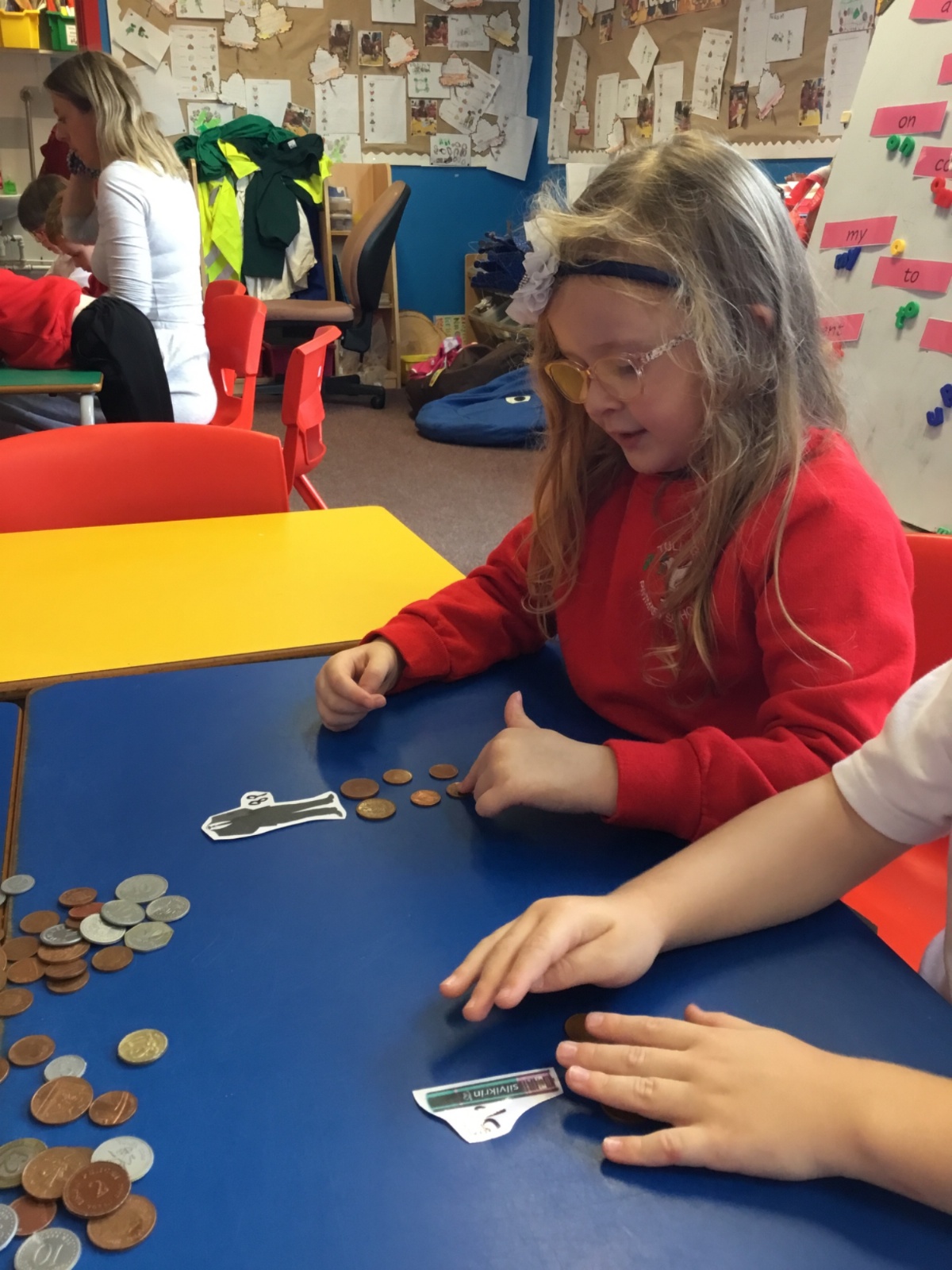 We used 1p and 2p coins to make the correct amount to help the 'Count' buy all he needed for the disco!🪩