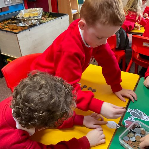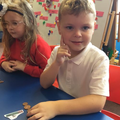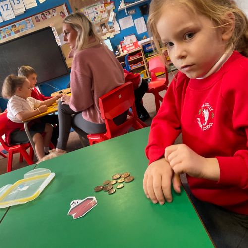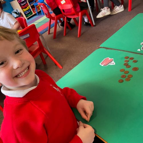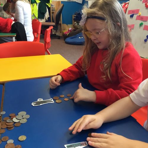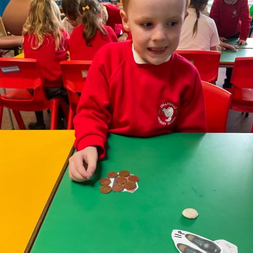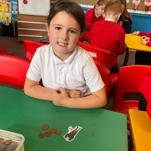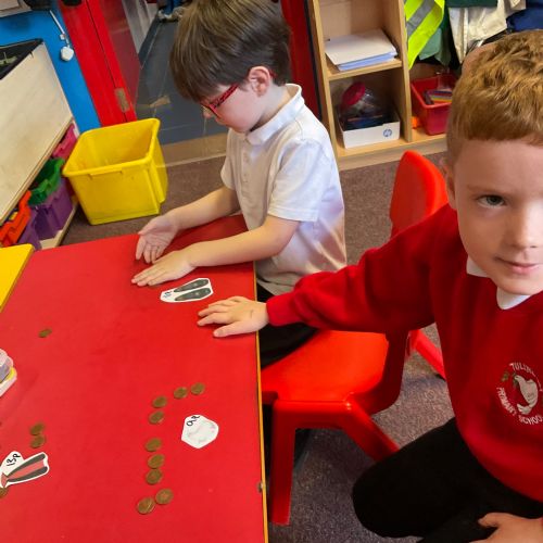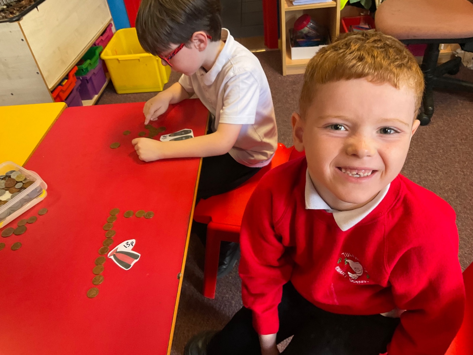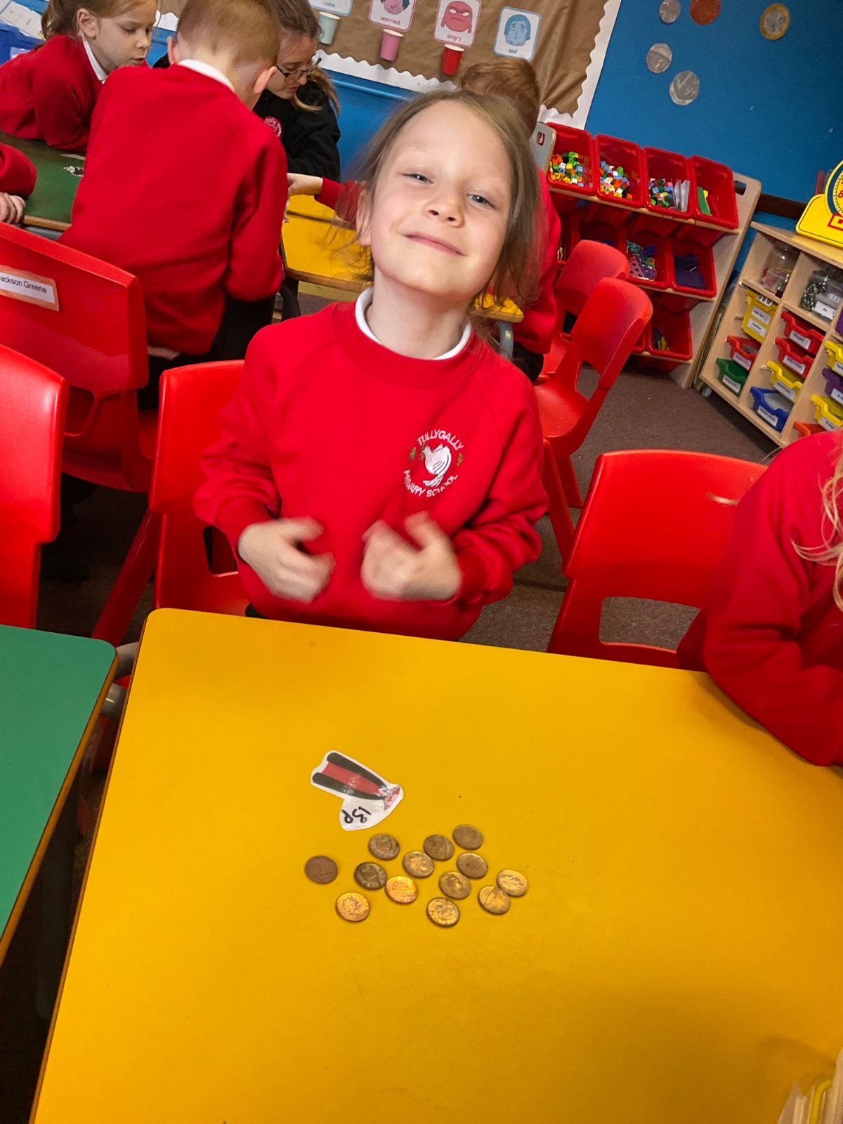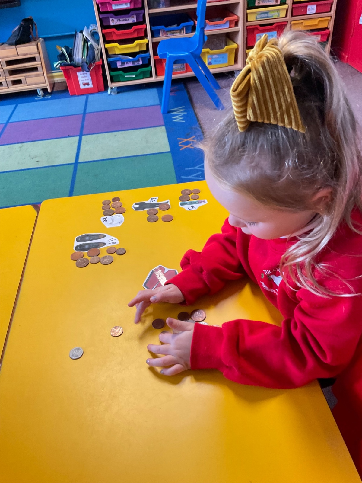 We used 1p and 2p coins to make the correct amount to help the 'Count' buy all he needed for the disco!🪩
